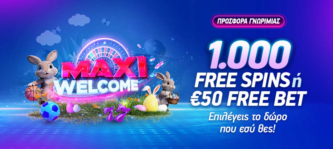 H Sportingbet σου επιφυλάσσει απίθανο καλωσόρισμα, με MAXI έπαθλα: 1.000 Free Spins ή €50 Free Bet για να μπεις στο παιχνίδι.