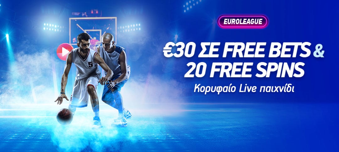 Απολαμβάνεις όλη τη δράση της τελευταίας αγωνιστικής της EuroLeague, με δώρο €30 σε Free Bets & 20 Free Spins!