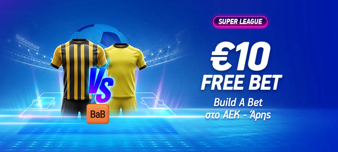 Μπαίνεις στη σούπερ δράση του ΑΕΚ - Άρης, με δώρο 10€ Free Bet!