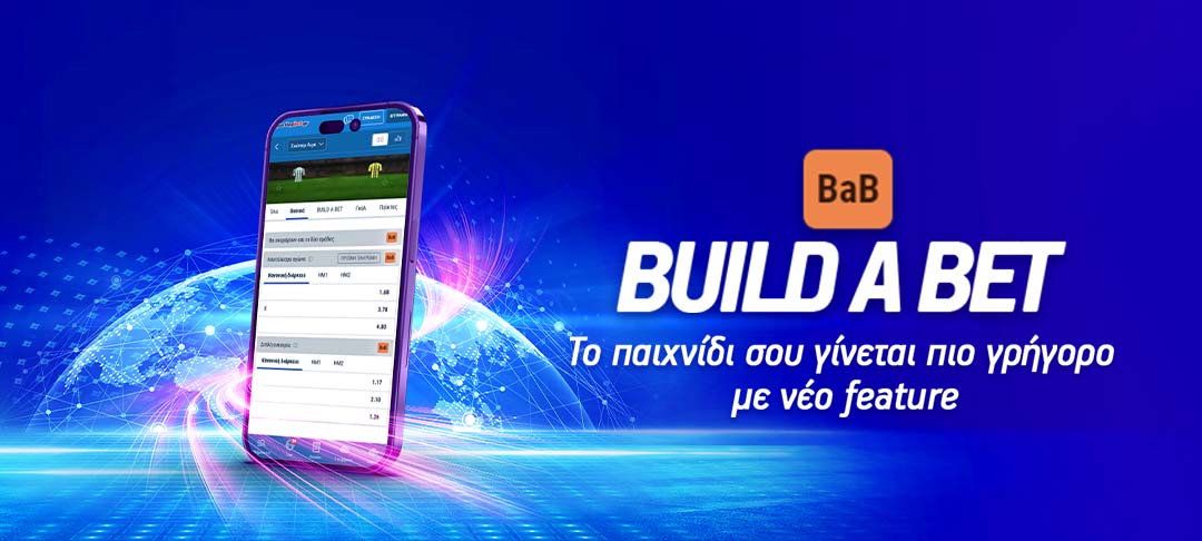 Το Build A Bet ανανεώθηκε κι έκανε το παιχνίδι σου στο Στοίχημα ακόμα πιο απλό! Σε κάθε αγορά που εμφανίζεται το εικονίδιο "BaB", με ένα άγγιγμα μπορείς να προσθέσεις την επιλογή που θέλεις στο κουπόνι σου. Επιπλέον, συνδυάζεις επιλογές από διαφορετικές αναμετρήσεις, καθώς η λειτουργία υποστηρίζει και Παρολί στοιχήματα. Οι επιλογές σου εμφανίζονται αυτόματα σε ένα πολλαπλό στοίχημα με κορυφαίες αποδόσεις.